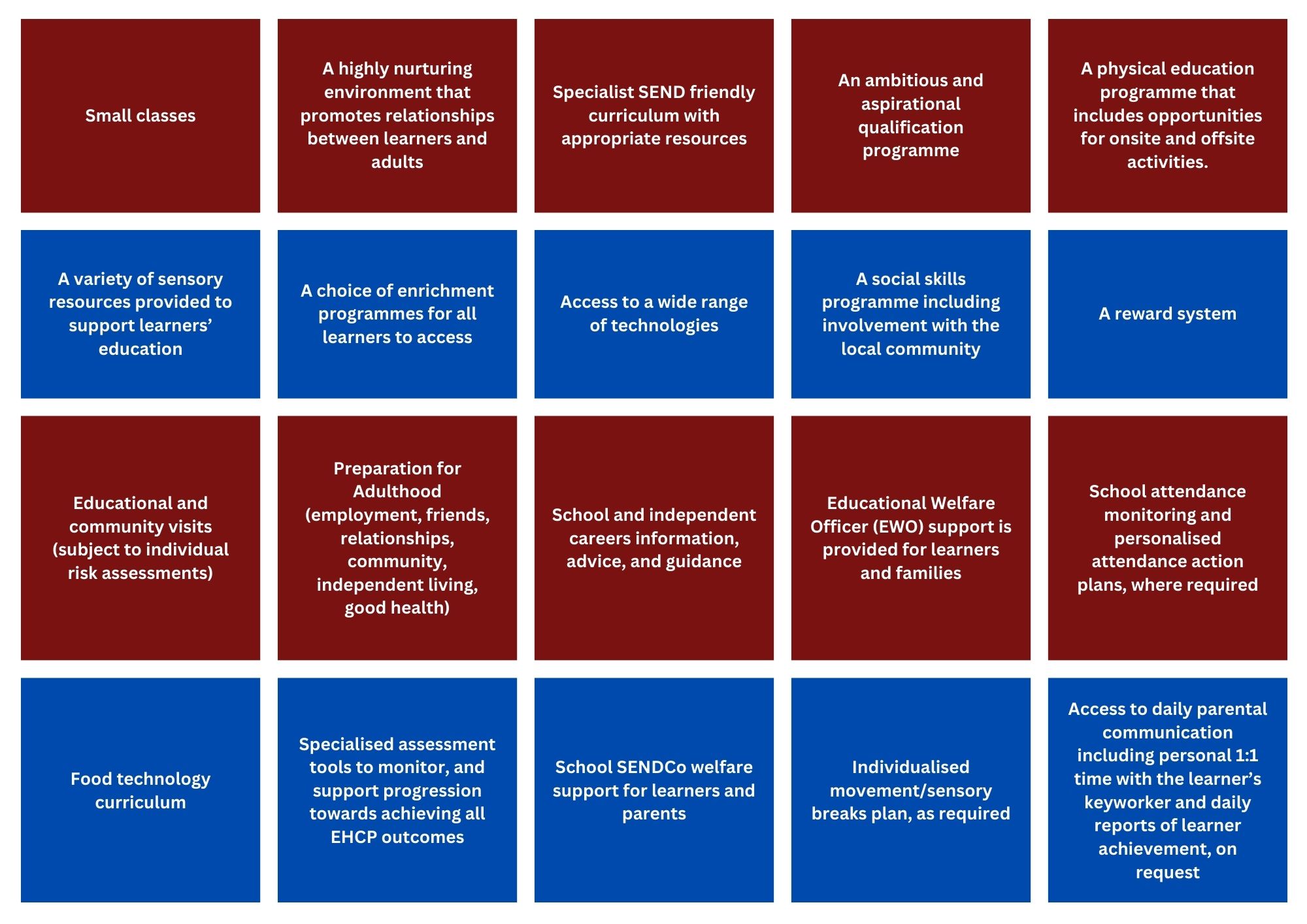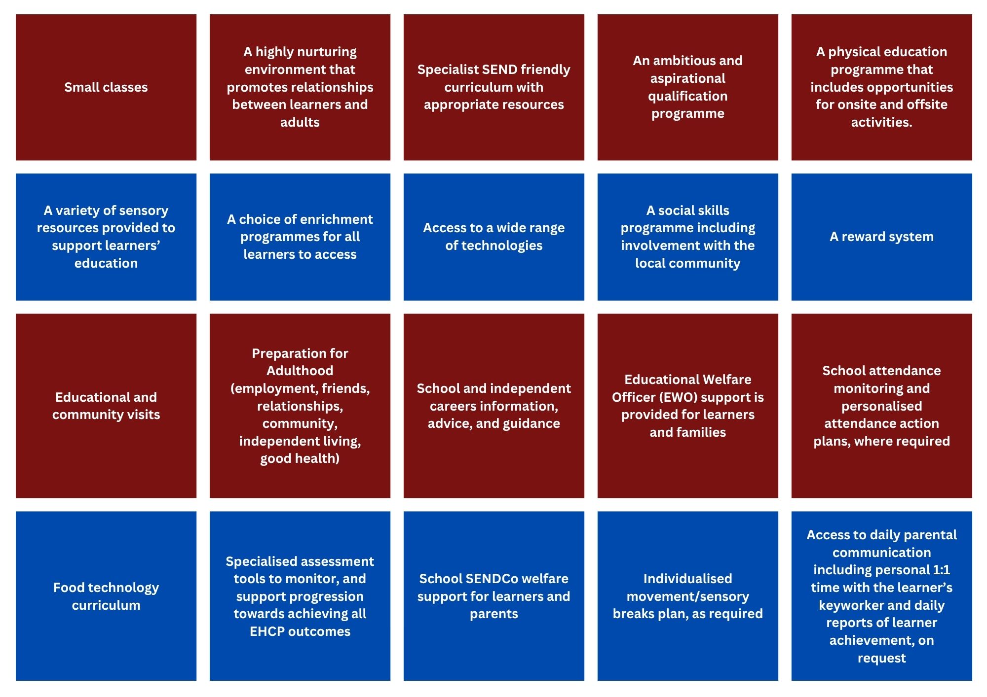 We offer a structured environment centred on a meaningful and contextualised curriculum offer. Our clear purpose is to make an enduring difference to our learners’ lives, providing them with the knowledge, resilience and skills to enable them to have lasting employment and lifelong success.